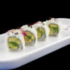 Rotolo di riso con surimi di granchio, avocado, maionese, sesamo, salmone piccante (8 pezzi) Allergeni: crostacei, uova, pesce, sesamo