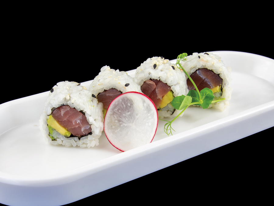 Rotolo di riso con tonno, avocado, sesamo (8 pezzi)
