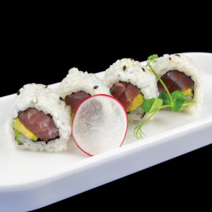 Rotolo di riso con tonno, avocado, sesamo (8 pezzi) Allergeni: pesce, sesamo