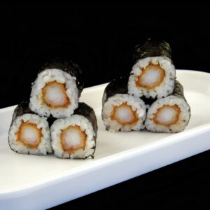 Gambero cotto, riso, alga nori (6 pezzi) Allergeni: crostacei