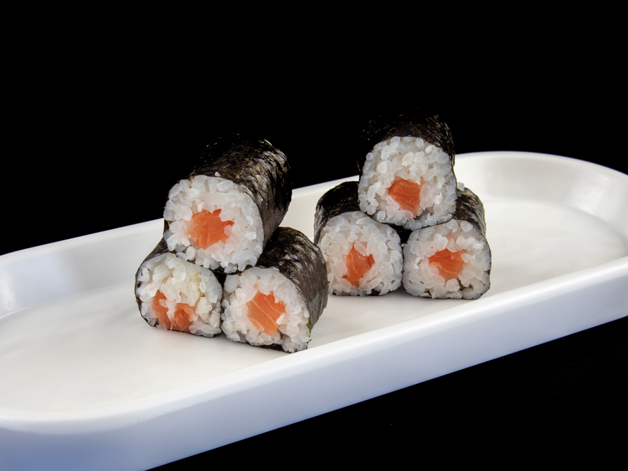 Salmone, riso, alga nori (6 pezzi)
