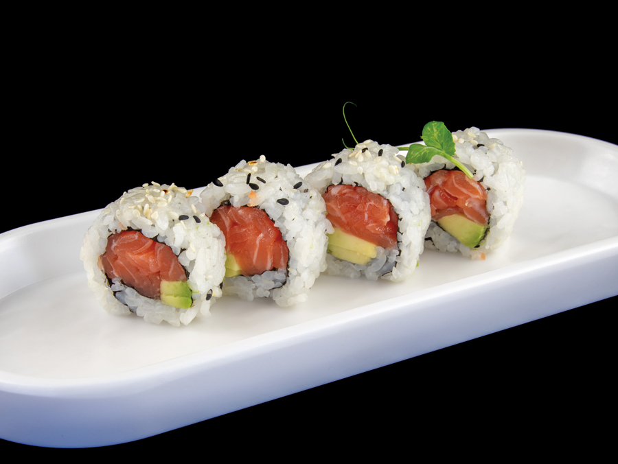 Rotolo di riso con salmone, avocado, sesamo (8 pezzi)
