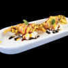 Bignè di riso avvolti da salmone con philadelphia, salsa teriyaki e pasta kataifi (3 pezzi) Allergeni: glutine, pesce, soia, lattosio